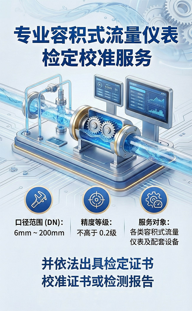 本站可对口径为6mm~200mm,精度等级不高于0.2级的各类容积式流量仪表及其配套设备进行检定、校准和性能检测,并依法出具检定证书、校准证书或检测报告。